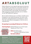 - Art Absoluut Groepstentoonstelling in een fantastisch mooie expositieruimte in een natuurgebied. Drankjes te krijgen. Lekker lange wandeling maken na afloop. Twee weekends te zien: 24 en 25 februari en 2 en 3 maart, telkens van 12 tot 17 uur